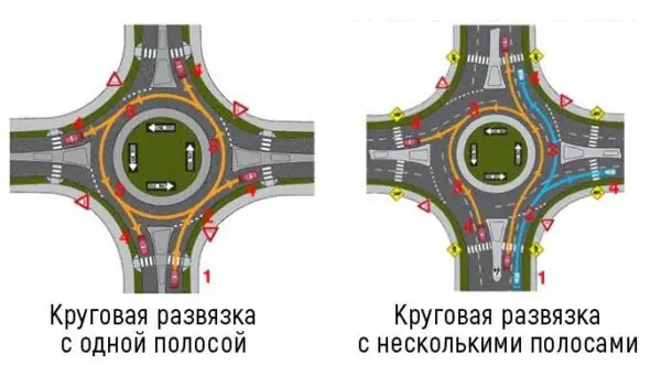 Круговые развязки предоставляют альтернативу управлению движением с помощью светофоров и знаков STOP. При въезде на круговую развязку важно соблюдать правила уступающего движения: уступите тем машинам, которые уже находятся на развязке. Въезжайте на круговую развязку справа от центрального островка и двигайтесь против часовой стрелки. Необходимо снизить скорость до минимально разрешенной на дороге, чтобы уступить пешеходам на пешеходных переходах. Выберите правильную полосу на дороге с несколькими полосами перед выездом на развязку.