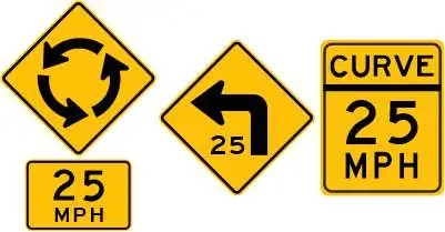 Эти знаки могут сопровождаться табличками с рекомендованной скоростью, с которой вы должны двигаться.