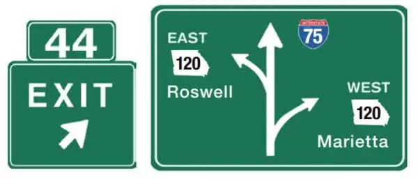 Номера на этих знаках обозначают определённые съезды, межштатные или шоссейные дороги.