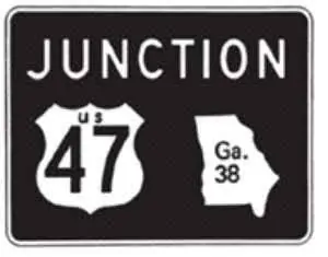 Пересечение шоссе 47 США и хайвея Ga. 38. Эти дороги пересекут шоссе, по которому вы едете.