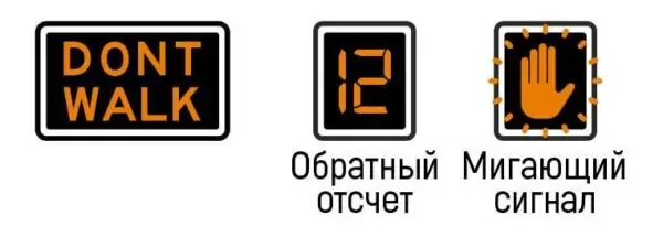 Красный сигнал светофора означает, что вы должны полностью остановиться перед въездом на пешеходный переход или перекресток и ждать, пока не загорится зеленый свет, прежде чем продолжить движение. Желтый сигнал предупреждает о смене с зеленого на красный. Сбавьте скорость и приготовьтесь остановиться. Зеленый свет означает, что вы можете продолжить движение, если это безопасно, уступив дорогу транспортным средствам и пешеходам на перекрестке.