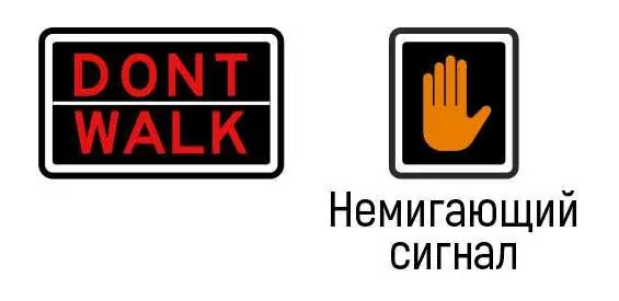 Красный мигающий сигнал означает, что вы должны полностью остановиться (относитесь к нему так же, как к знаку STOP). Вы можете начинать движение, после того как уступите пешеходам и другим транспортным средствам.