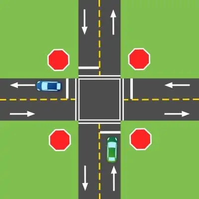 Знак в форме восьмиугольника используется исключительно для обозначения STOP. Увидев этот знак, вы должны полностью остановиться перед стоп-линией. Если стоп-линии нет, остановитесь перед пешеходным переходом на вашей стороне перекрестка. Если пешеходного перехода нет, остановитесь в месте, откуда вам лучше всего видно приближающийся транспорт. Не начинайте движение, пока все пешеходы не завершат переход, и вы не уступите дорогу приближающимся транспортным средствам.