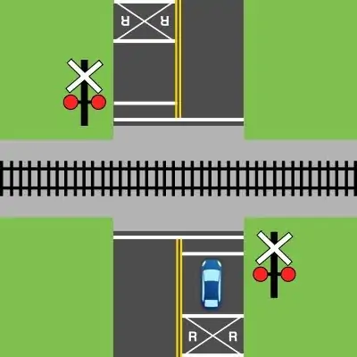 Когда дорогу пересекает железнодорожный переезд, на проезжую часть обычно наносят большой крест и две буквы «R». Желтая линия справа от центра на таких переходах предназначена для предотвращения обгона. Переход может быть оборудован шлагбаумами и/или аварийными огнями, чтобы предупредить водителей о приближении поездов. Водители обязаны остановиться, если сигналы указывают на приближение поезда.