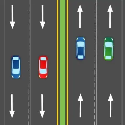 Двойная белая линия (пунктирная или сплошная) указывает, можно ли пересекать ее для смены полосы. Если двойные белые линии прерывистые, перестраиваться на соседнюю полосу движения разрешено. Если они сплошные, смена полосы запрещена.