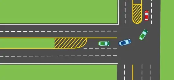 Посередине многих шоссе и магистралей располагаются специальные полосы, обозначенные сплошными и пунктирными желтыми линиями. Эти полосы предназначены для выполнения левых поворотов. Водитель, намеревающийся повернуть налево, должен перестроиться на эту полосу непосредственно перед поворотом.