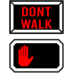 Сигнал светофора Don’t Walk («Стойте») или символ поднятой руки означает, что пешеходам запрещено переходить перекресток.