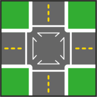 В случае сигналов, разрешающих переход проезжей части одновременно для нескольких направлений или по диагонали, весь транспорт должен остановиться.