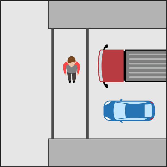 На перекрестках, где движение регулируется знаками STOP, YIELD или светофорами, на дороге может быть нанесена белая стоп-линия и/или две параллельные линии, обозначающие пешеходный переход. Если необходимо остановиться, вы должны сделать это перед стоп-линией или пешеходным переходом. Остановка на пешеходном переходе или стоп-линии допустима только если это требует дорожный знак, сигнал светофора, указания регулировщика или для того, чтобы пропустить пешехода или скутер на переходе.