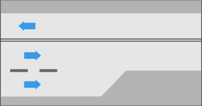 Одиночная сплошная линия: Вам разрешено обгонять другие транспортные средства или менять полосу движения, когда этого требуют дорожные условия, например, если на пути препятствие.