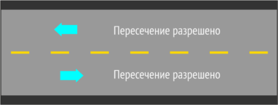Одиночная прерывистая линия: Вы можете обгонять другой транспорт или менять полосу движения, когда это безопасно.