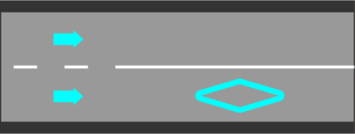 Символ в виде ромба указывает на выделенные (зарезервированные) полосы для автобусов, автомобилей с пассажирами, велосипедов, такси и других транспортных средств с высоким уровнем загрузки (HOV). Вам запрещено использовать эти полосы, если ваш транспорт не соответствует указанным требованиям, либо если движение по полосам ограничено по времени суток.
