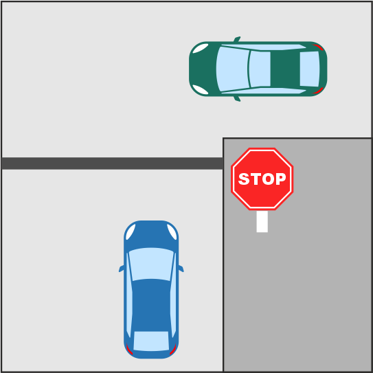 Значение: Остановитесь полностью и уступите дорогу транспортным средствам и пешеходам, приближающимся к перекрестку. Продолжайте движение только тогда, когда это безопасно. Если есть стоп-линия, остановитесь перед ней. Если стоп-линии нет, остановитесь перед пешеходным переходом. Если нет ни стоп-линии, ни пешеходного перехода, остановитесь перед перекрестком, чтобы иметь возможность видеть движение на нем и по сторонам.
