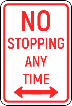 Остановиться под знаком «No Stopping» можно только по сигналу светофора, требованию дорожных знаков или указанию полицейского, а также для предотвращения столкновения с другим транспортом.